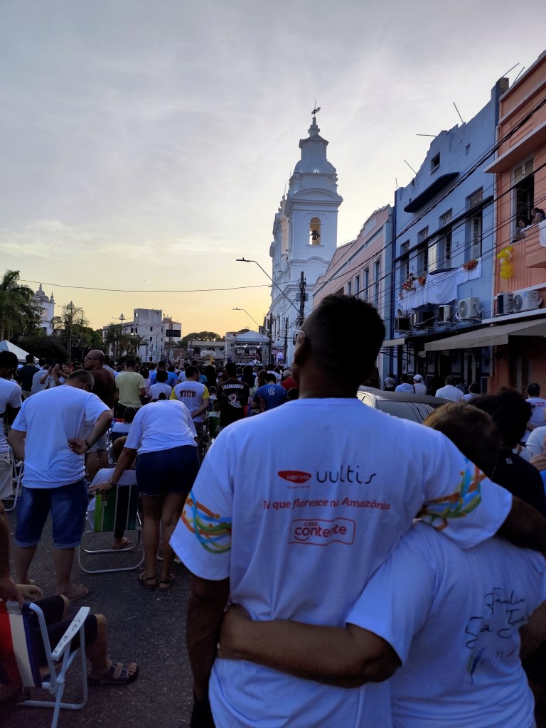Este ano pude sentir de verdade essa energia. Fui à casa de vizinhos e amigos comer maniçoba, vi famílias amparando seus parentes em suas promessas, pessoas enfaixando os pés, jogando água, socorrendo quem nem conhecem. Não faltavam crianças nos ombros ou no colo, e principalmente, braços estendidos em direção à Mãe. Como posso ficar ilesa depois de presenciar tudo isso? Eu só consigo pensar no quanto gostaria que todos os dias fossem Círio, não necessariamente com procissão, mas com esse sentimento de solidariedade que se alastra, que invade. Belém me acolheu de uma forma como nenhum outro lugar fez até hoje. São as pessoas daqui que me levantam, que me abraçam.